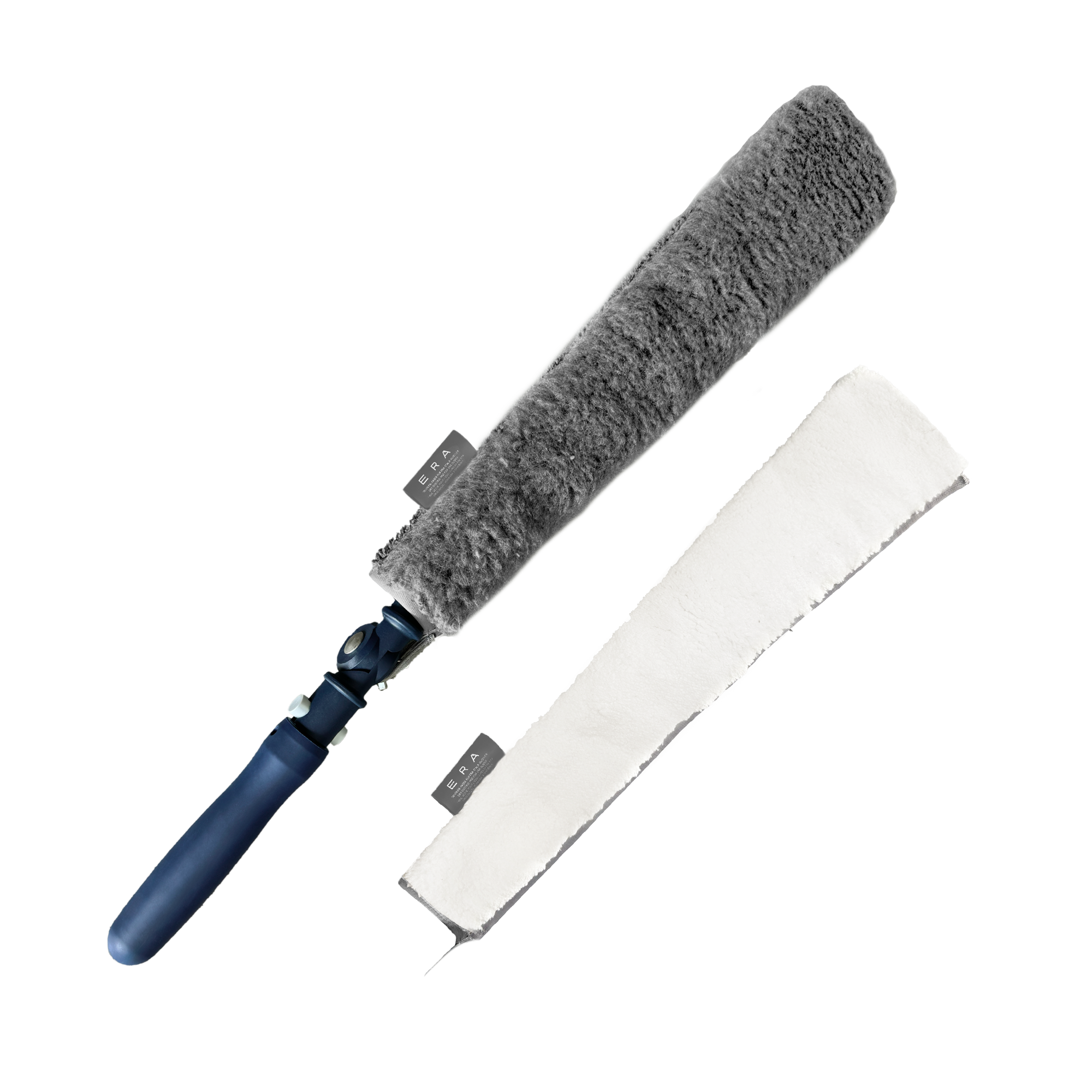 Der Staub-Wischer eignet sich besonders zur Entfernung von Staub, Spinnweben und trockenem Schmutz, denn er nimmt den Schmutz auf und schließt ihn ein. Dadurch wird das Aufwirbeln von Staub verhindert und der Staubwischer ist auch für Allergiker eine gute Wahl. Er ist mit zwei unterschiedlichen Fasern bestückt, einer festen Trockenfaser für glatte Oberflächen und einer weicheren Staubfaser für unebene Flächen. Für das Staubwischen in der Höhe lässt er sich mit dem ERA Teleskop-Stiel ganz einfach verlängern.