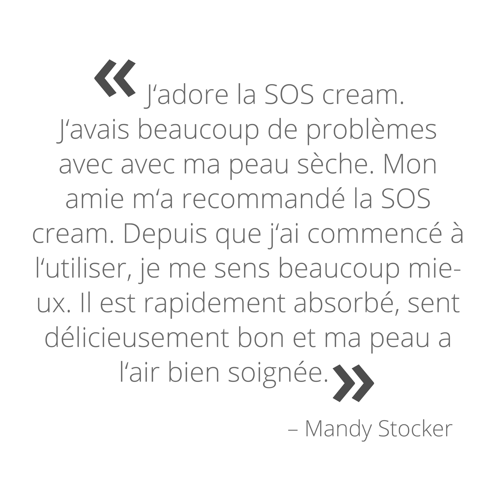 Notre sos cream fortifie et protège ta peau sèche et sollicitée. La combinaison précieuse d’huiles de grande qualité, comme l’huile d’amande, l’huile de noyaux d’abricot et l’huile d’argan, ainsi que les extraits naturels de fleurs de souci et de gombo hydratent et apaisent la peau et renforcent la barrière protectrice naturelle de la peau. La crème riche peut être utilisée pour le soin quotidien du visage ou lorsque le besoin s’en fait sentir.