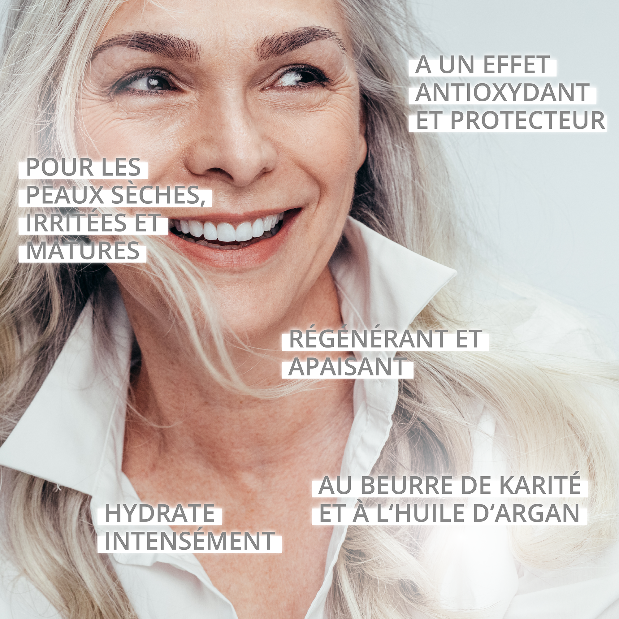 Appliquer le matin et le soir une quantité de la taille d’un petit pois sur le visage/décolleté et faire pénétrer en massant en douceur !