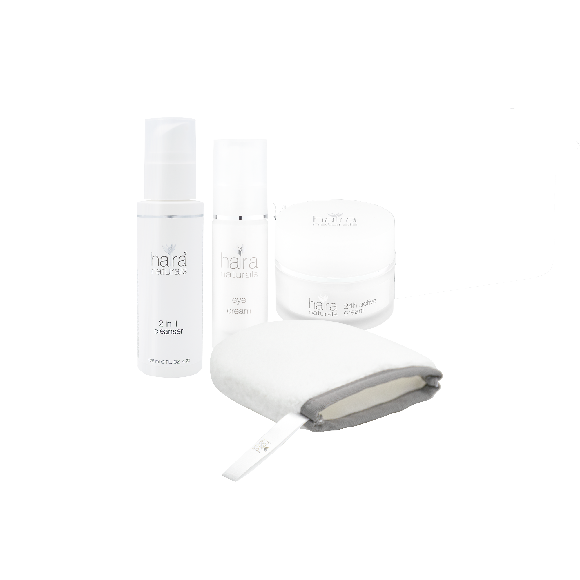 Verse aloë vera gel, hoogwaardige oliën en zeer effectief hyaluronzuur zorgen voor optimale verzorging, hydratatie en bescherming en ondersteunen de huid bij haar dagelijkse uitdagingen. De producten zijn optimaal op elkaar afgestemd en bereiken het beste effect wanneer ze samen worden gebruikt. De ideale start met hara naturals!