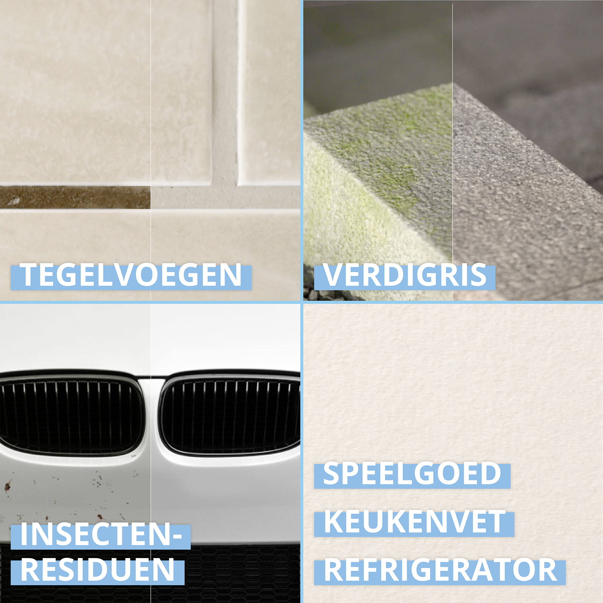Het verwijdert betrouwbaar alle soorten organische vervuiling (bijv. insectenresten op het voertuig, groene aanslag buiten, vuil in de keuken) en maakt donkere tegelvoegen weer licht.